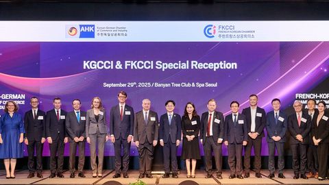 주한프랑스상공회의소(FKCCI, 대표 소냐 샤이예브)와 주한독일상공회의소(KGCCI, 대표 마리 안토니아 본 쇤부르크)는 9월 29일 서울 반얀트리 클럽 앤 스파 호텔에서 김정관 산업통상자원부 장관과 함께 특별 리셉션을 공동 개최했다.