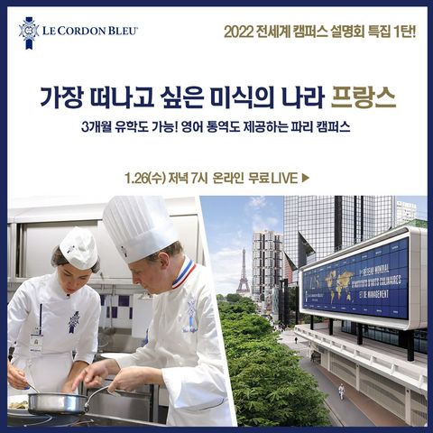 르 꼬르동 블루 한국지사는 이번 1월 26일 온라인 프랑스 요리유학 설명회를 개최할 예정이다.