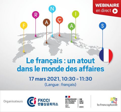 주한프랑스대사관과 한불상공회의소는 오는 3월 17일 '프랑스어 : 업무 분야에서 성공의 수당'이라는 주제로 화상 세미나를 개최합니다.
