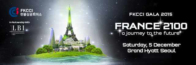 2015년 12월 5일 토요일, 그랜드 하얏트 서울에서 개최된 한불상공회의소 갈라 디너에서 여러분을 만나뵙게 되어 영광이었습니다! 26회를 맞은 이번 갈라 디너에서는 ‘프랑스 2100’이라는 미래의 도착지를 향한 도약을 표현했습니다. 자연을 상징하는 녹색과 어우러진 혁신적인 프랑스로 잊을 수 없는 시간 여행을 떠나보시기 바랍니다. 파리에서 열린 유엔기후변화협약 당사국총회와 기후 변화에 직면한 우리는 더 나은 미래를 위해 중요한 역할을 해야 할 전환점에 놓여 있습니다. 지속가능한 발전을 위한 새로운 기술과 혁신을 만나보세요!