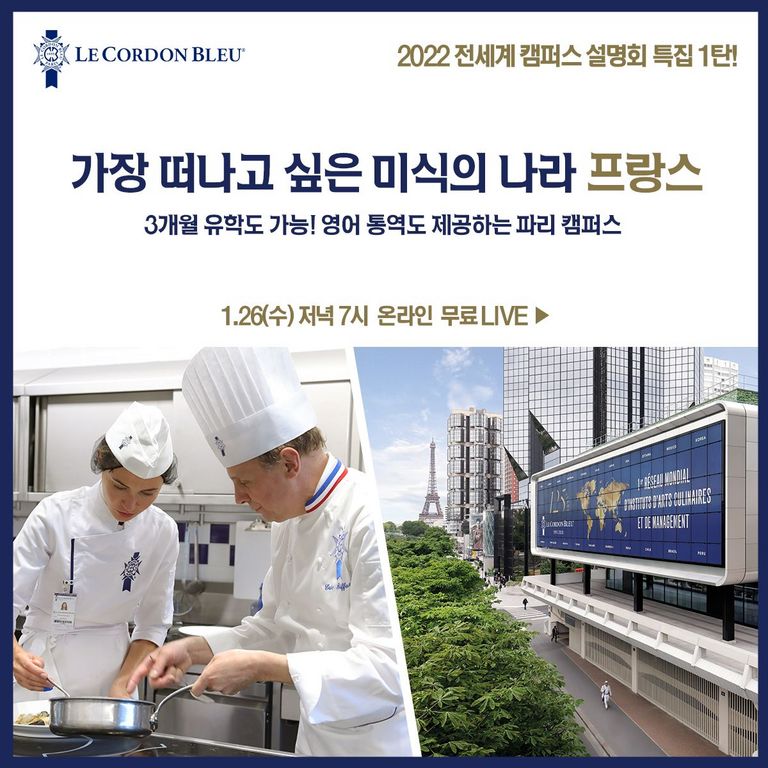올해로 127주년을 맞이한 프랑스 르꼬르동블루는 World Culinary Awards 2021에서 World’s Best Culinary Training Institution 세계 최고의 요리 교육기관으로 선정되었다. 파리캠퍼스에서는 2016년 확장 이전을…